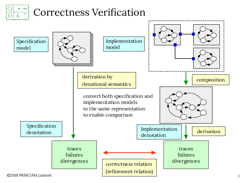 On CSP, developer can write Specification model and split it into some Implementation models connected by channel.