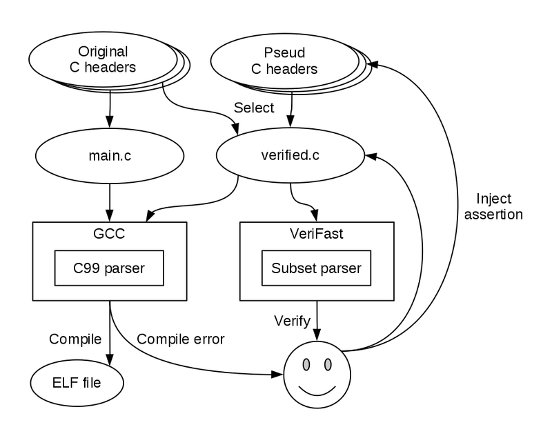 But VeriFast doesn’t have C99 compatible parser. Then today, VeriFast verification process is such like: